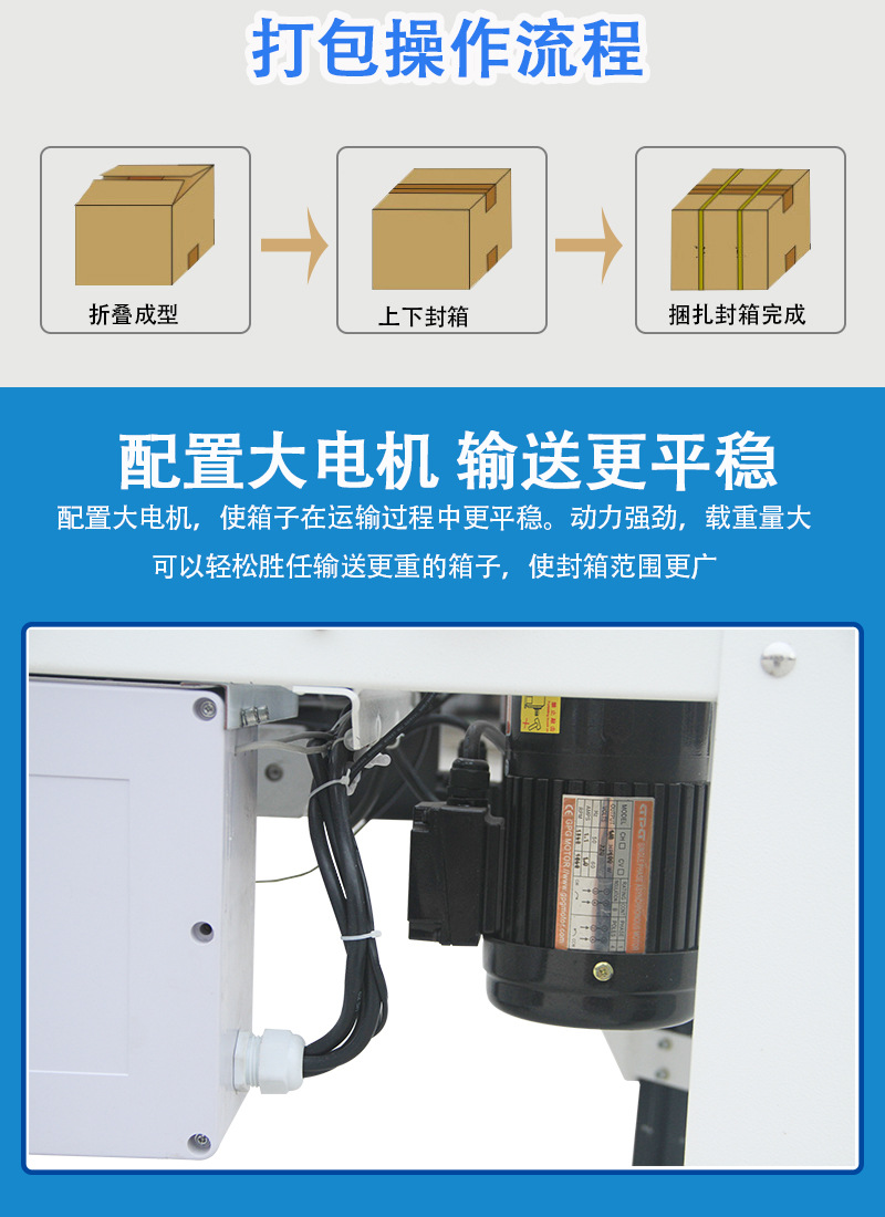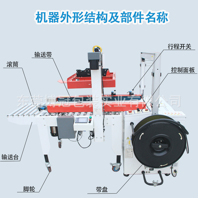 • 它具有出色的連續(xù)作業(yè)能力,能夠不間斷地對(duì)紙箱進(jìn)行封箱打包處理。這是因?yàn)槠鋬?nèi)部的自動(dòng)化系統(tǒng)和物料供給機(jī)制(如膠帶和打包帶的供給)能夠保證在一個(gè)工作周期結(jié)束后,迅速為下一個(gè)周期做好準(zhǔn)備。例如,膠帶切割后,新的膠帶能夠馬上被引導(dǎo)至下一個(gè)紙箱封口位置;打包帶熔接完成后,新的打包帶能及時(shí)環(huán)繞下一個(gè)紙箱。這種連續(xù)作業(yè)能力使得在批量包裝任務(wù)中,它能夠最大限度地減少中間的停頓時(shí)間,大大提高了整體的工作效率。