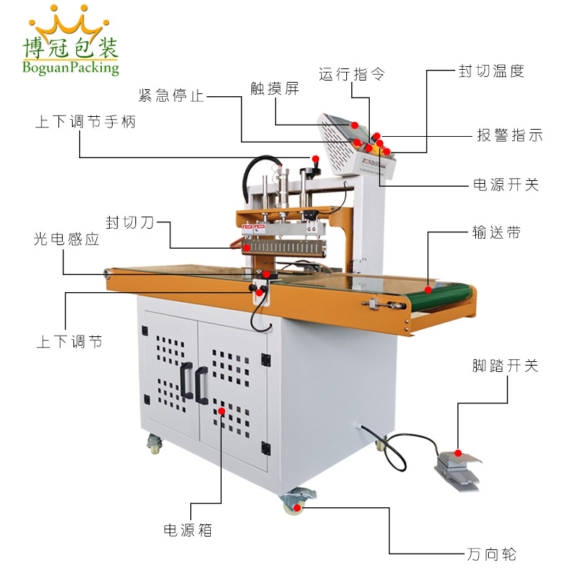 連續(xù)式封切機(jī)主要用于對(duì)連續(xù)輸送的包裝材料進(jìn)行封切操作