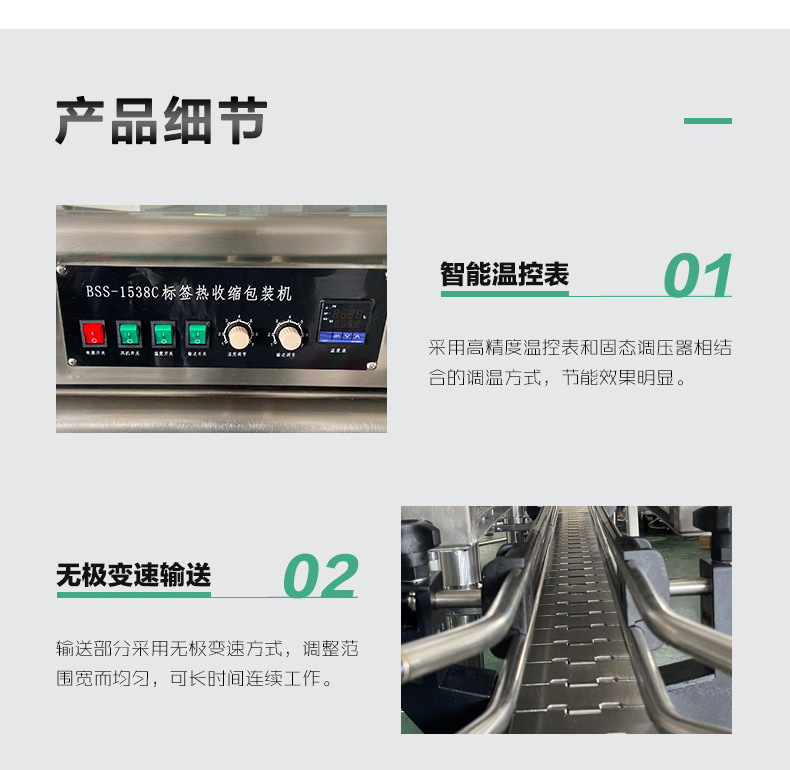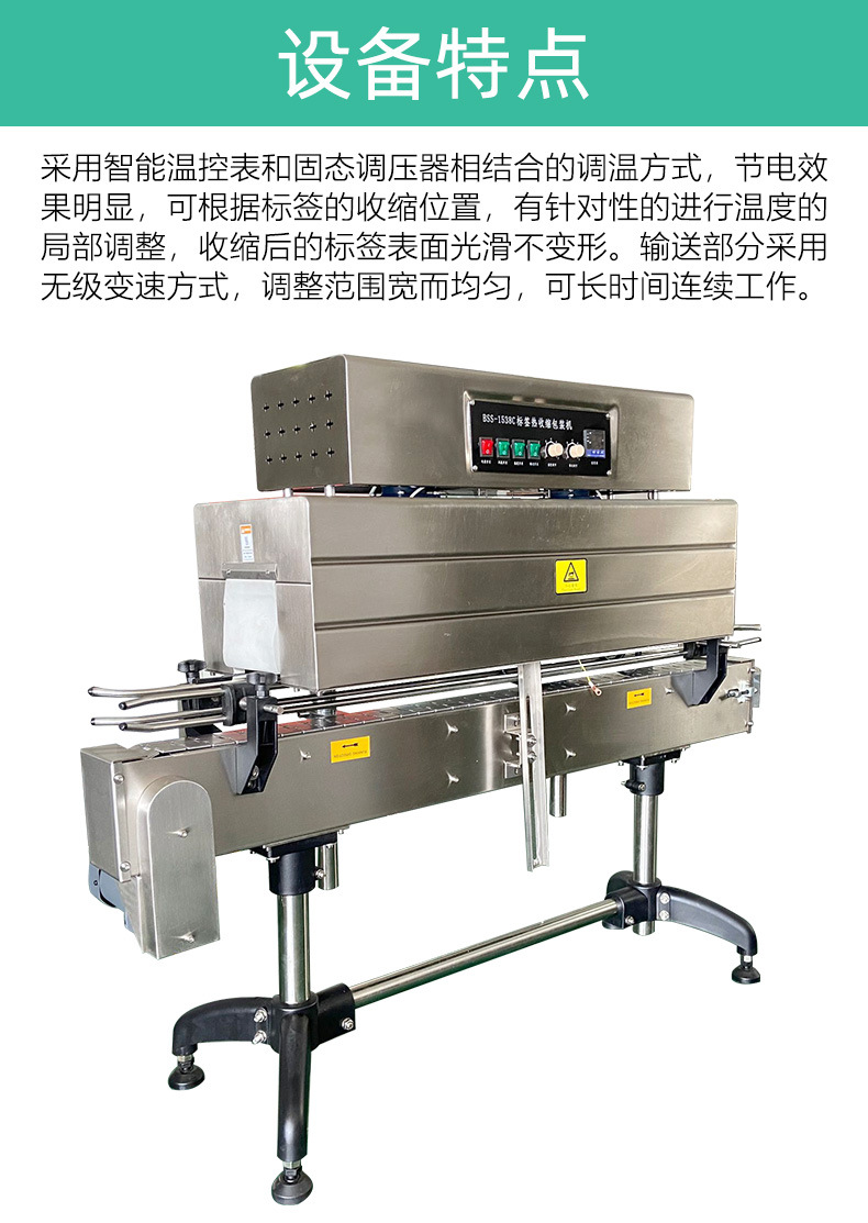 • 能夠精確控制加熱溫度和時(shí)間,使標(biāo)簽?zāi)ぞo密貼合在產(chǎn)品表面,避免出現(xiàn)褶皺、氣泡等包裝缺陷。收縮后的標(biāo)簽?zāi)け砻婀饣?、平整,提升了產(chǎn)品的整體外觀形象。