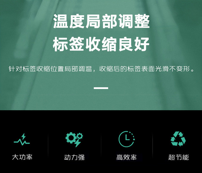 • 電加熱方式具有較高的熱效率,相比其他加熱方式(如蒸汽加熱),能夠更快地使標(biāo)簽?zāi)み_(dá)到收縮溫度。并且,通過(guò)精確的溫度控制和優(yōu)化的加熱單元設(shè)計(jì),可以減少不必要的熱量損失,降低能源消耗。
