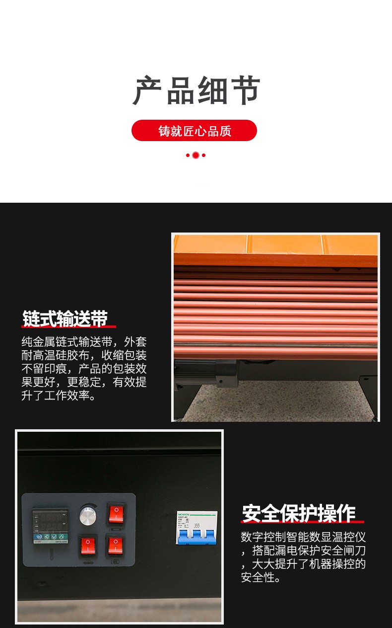 • 質(zhì)量可靠的熱收縮機(jī)具有良好的穩(wěn)定性。在長時(shí)間的工作過程中,能夠保持穩(wěn)定的工作狀態(tài)。其關(guān)鍵部件,如加熱系統(tǒng)、輸送系統(tǒng)等,經(jīng)過精心設(shè)計(jì)和制造,具有較高的可靠性。例如,加熱管采用優(yōu)質(zhì)材料,使用壽命長,能夠持續(xù)穩(wěn)定地提供熱量;輸送帶的傳動(dòng)裝置設(shè)計(jì)合理,能夠確保輸送帶平穩(wěn)運(yùn)行,減少故障發(fā)生的概率。這種穩(wěn)定性對(duì)于保證生產(chǎn)的連續(xù)性和產(chǎn)品包裝質(zhì)量的一致性非常重要。