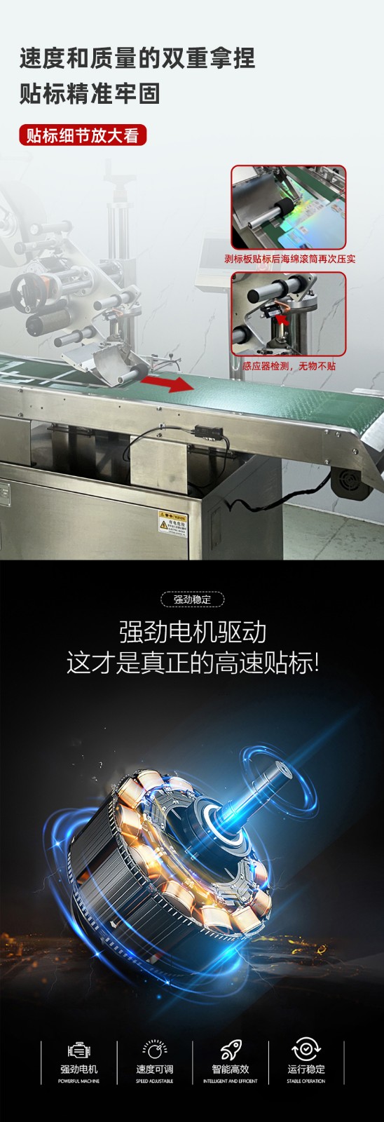 • 高精度貼標(biāo):貼標(biāo)精度通常可達(dá) ±1 至 2 毫米,甚至一些先進(jìn)設(shè)備能實(shí)現(xiàn) 0 誤差貼標(biāo),確保標(biāo)簽貼合平整、位置準(zhǔn)確,提升產(chǎn)品外觀品質(zhì)26。