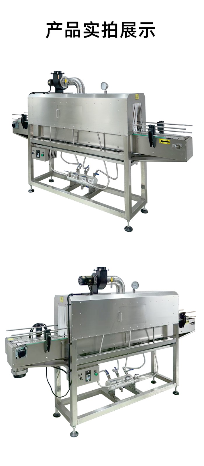 蒸汽收縮機的核心工作原理是利用蒸汽的均勻熱量,使熱收縮膜受熱后緊密包裹產(chǎn)品,最終完成密封定型的自動化包裝過程。