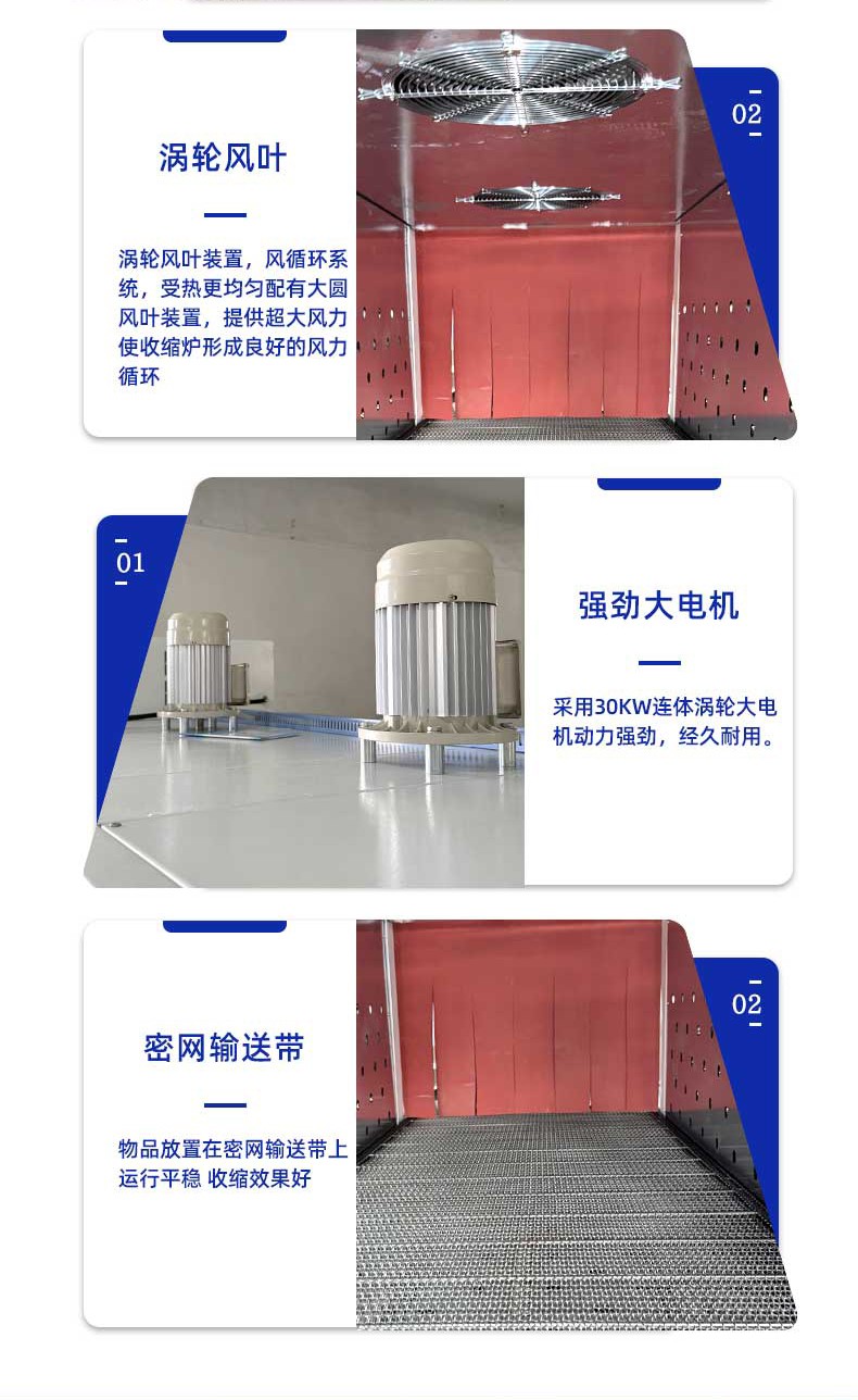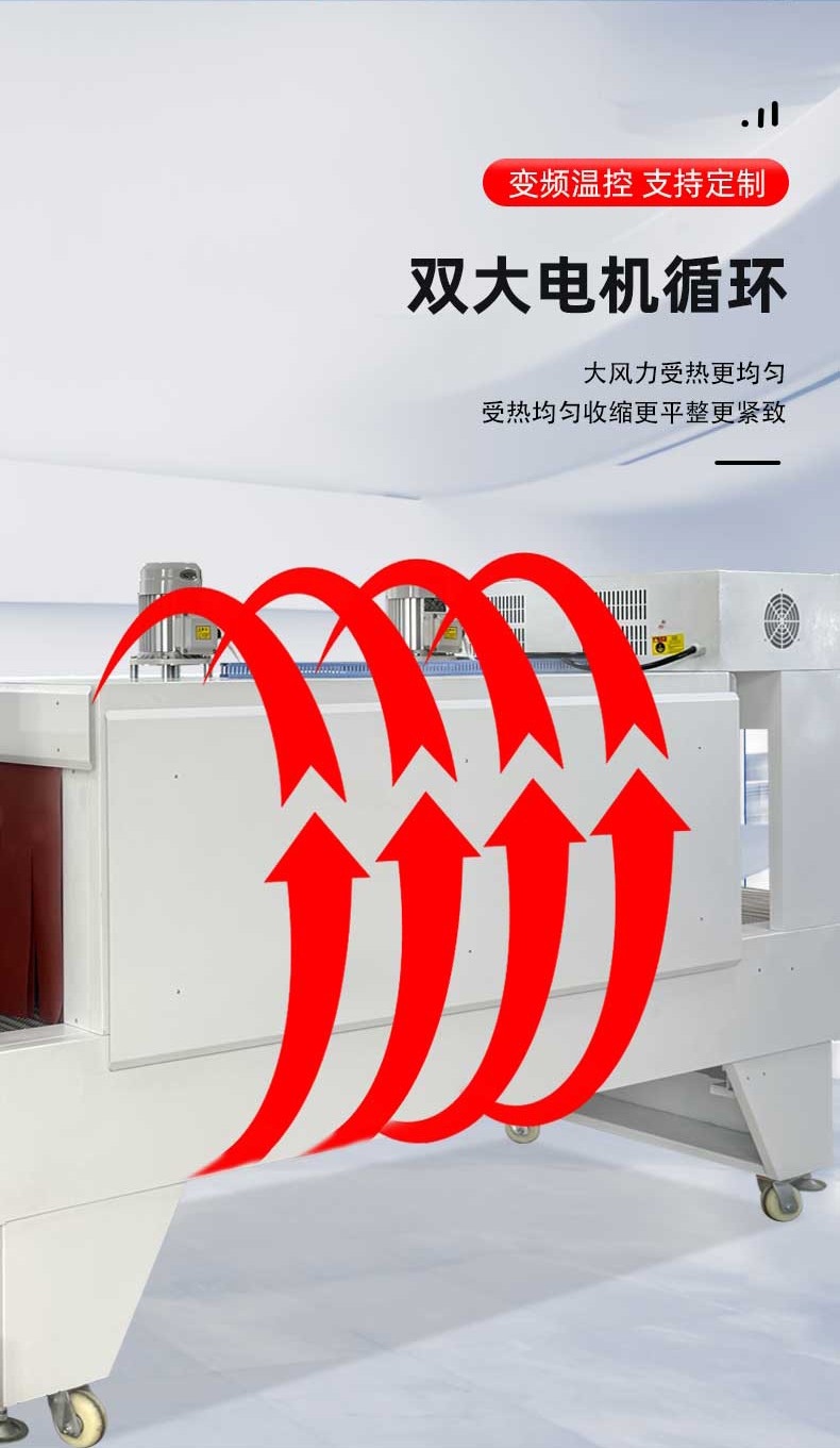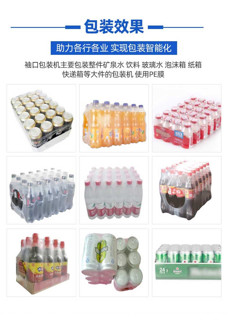 不同于傳統(tǒng)通用型包裝設(shè)備,袖口式熱收縮包裝機從設(shè)計源頭就瞄準 “瓶類產(chǎn)品組合包裝” 場景,徹底擺脫 “一機一用” 的局限。其針對瓶型包裝的特殊性,采用 “輸送帶 + 膜架 + 熱收縮通道” 的一體化結(jié)構(gòu):輸送帶可根據(jù)瓶身直徑、高度靈活調(diào)節(jié)寬度與輸送速度,無論是 500ml 的標準礦泉水瓶、1.2L 的果汁瓶,還是按壓式泵頭設(shè)計的洗手液瓶、帶提手的消毒液瓶,均能通過輸送帶平穩(wěn)輸送且不偏移;膜架部分配備自動張力控制系統(tǒng),可根據(jù)包裝膜厚度(常用 POF、PE 膜)精準調(diào)節(jié)出膜力度,避免因膜張力不均導(dǎo)致的包裝褶皺或破損;熱收縮通道則采用分區(qū)加熱設(shè)計,針對瓶身與組合間隙的不同熱收縮需求,實現(xiàn)均勻受熱,確保單瓶獨立包裝時膜面貼合瓶身,多瓶組合(如 2 瓶并排、4 瓶成箱、6 瓶堆疊)時膜體緊密包裹整體,杜絕 “局部收縮不到位” 的問題。