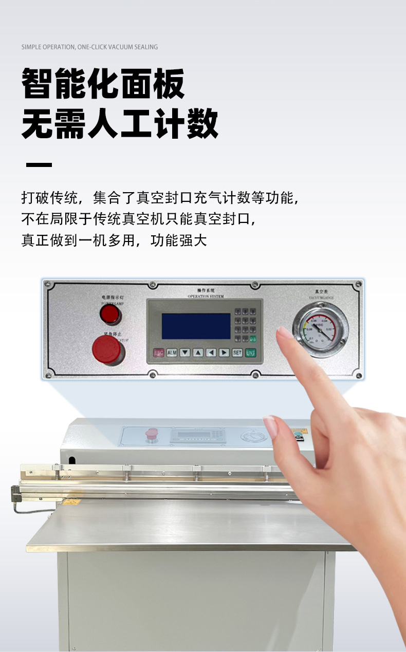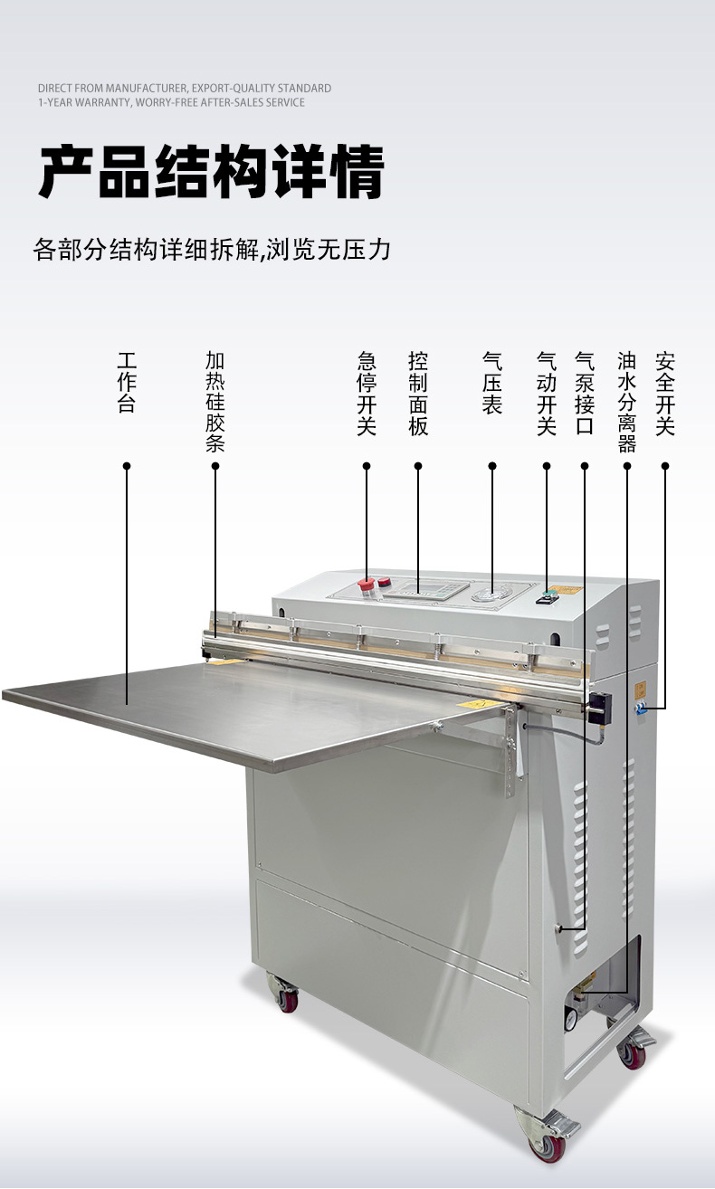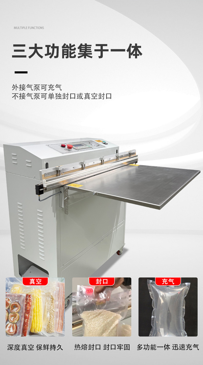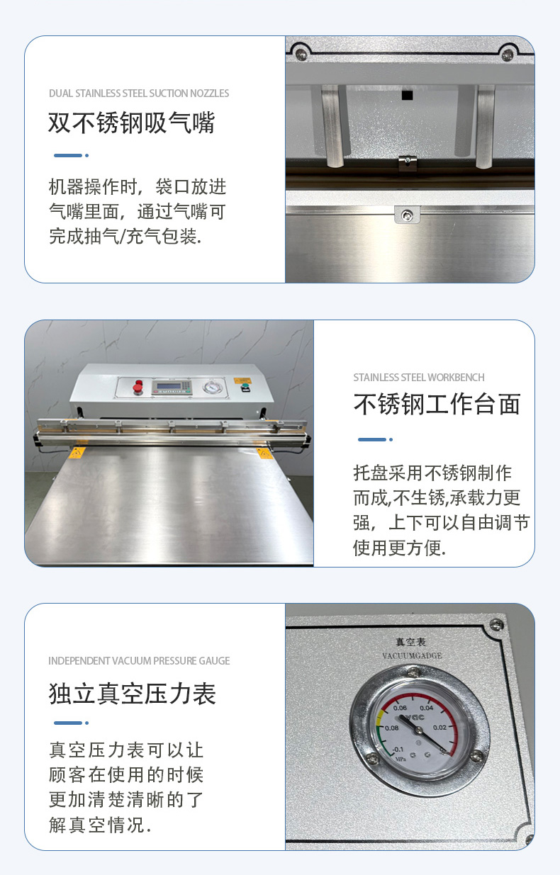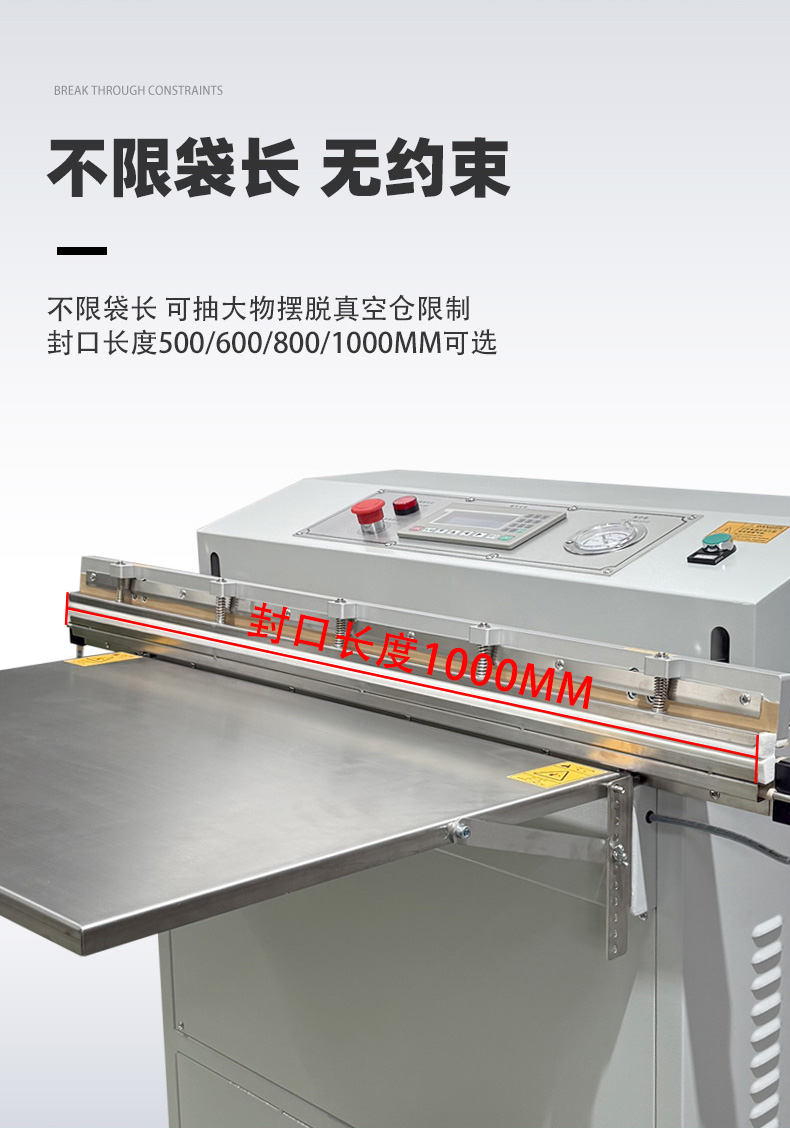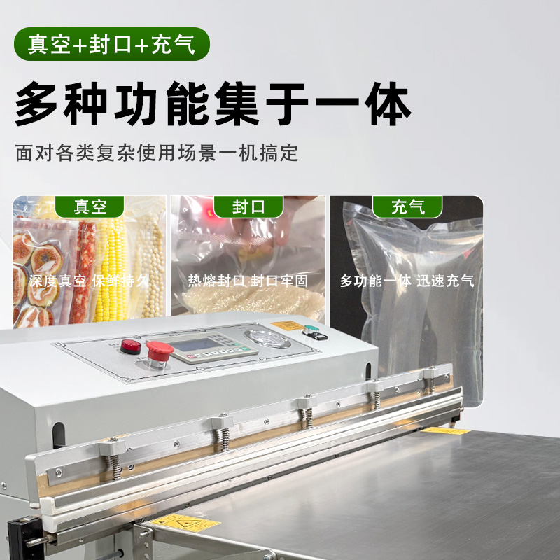 • 外抽真空包裝機(jī)的熱封條通常位于抽氣嘴下方或封口機(jī)構(gòu)處,外部有金屬防護(hù)蓋(防止誤觸高溫)。