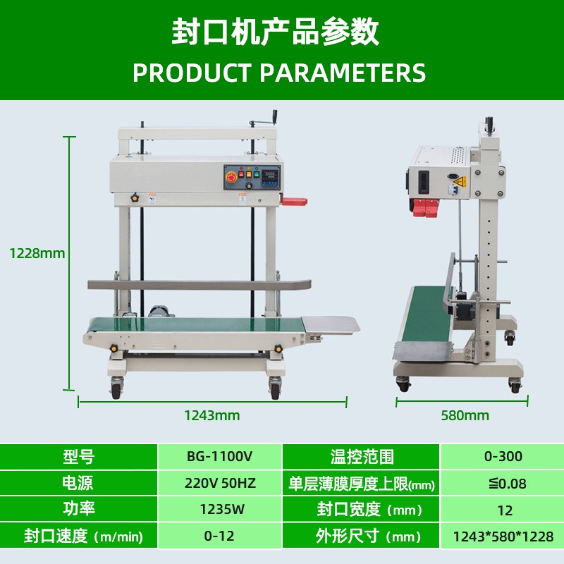立式連續(xù)PE膜大袋封口機(jī)FRD-1100V