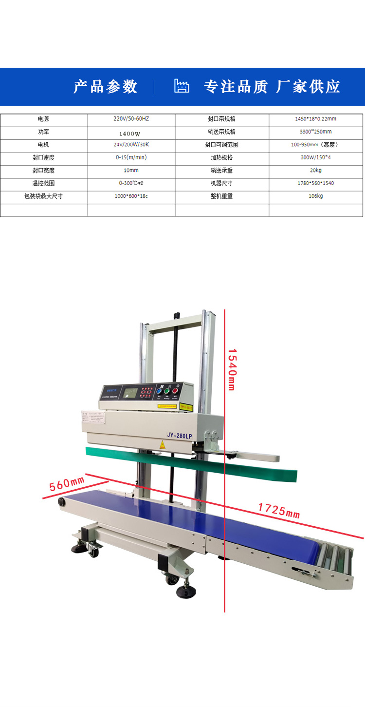 立式PE鋁箔袋重貨封口機(jī)BG-280L