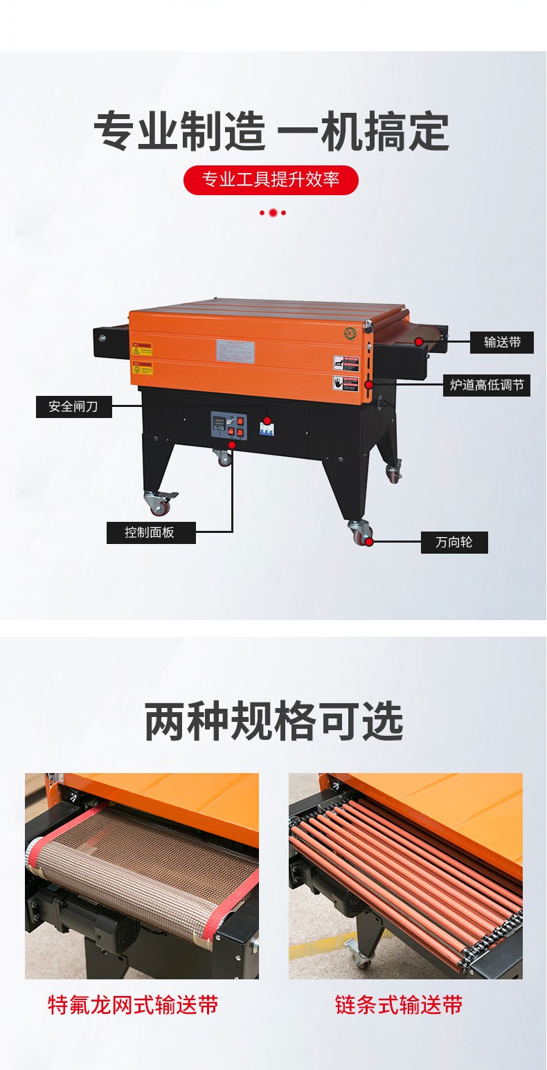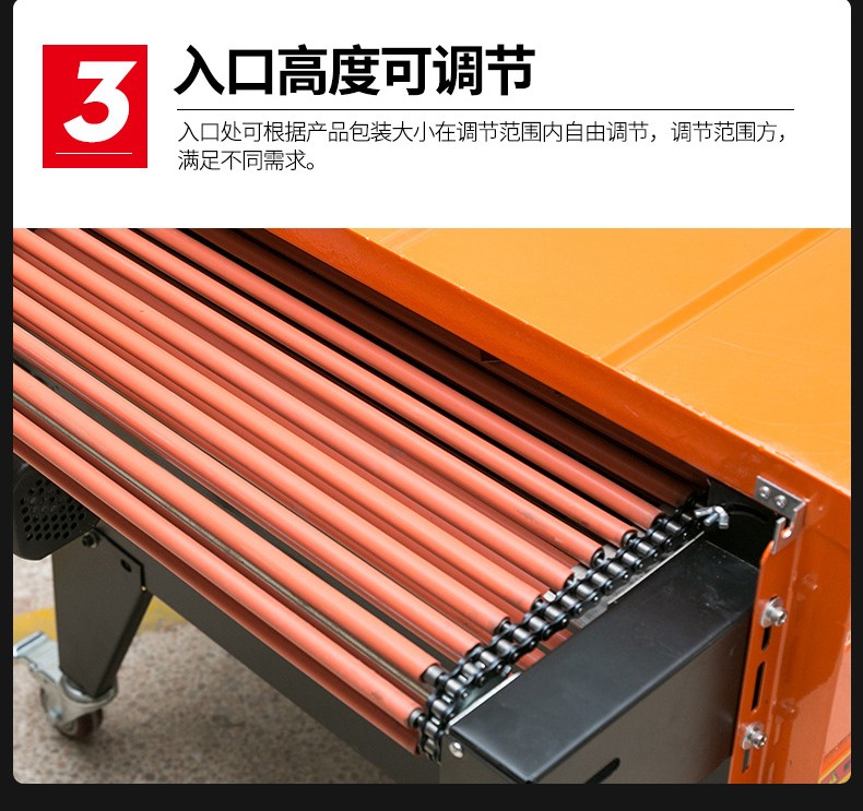 - 滾筒式熱收縮機(jī):通過滾筒的轉(zhuǎn)動(dòng)來輸送產(chǎn)品,適合包裝體積較大、較重的產(chǎn)品,如大型家電的外包裝。滾筒能夠承受較大的重量,并且可以根據(jù)產(chǎn)品的長(zhǎng)度調(diào)整滾筒之間的間距。