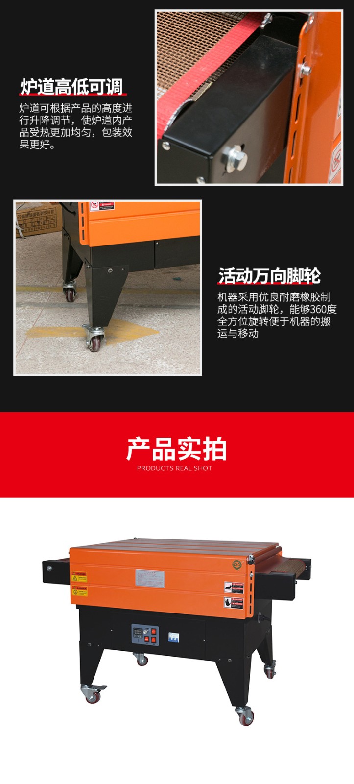 - 用于傳送需要包裝的產(chǎn)品。通常是由輸送帶組成,輸送帶的速度也可以調(diào)節(jié)。這使得不同尺寸和包裝速度要求的產(chǎn)品都能在機器中順利通過。比如,對于小型的文具產(chǎn)品,輸送帶可以以較慢的速度運行,保證熱收縮包裝的質(zhì)量;而對于批量較大的食品包裝,可以加快輸送帶速度,提高包裝效率。