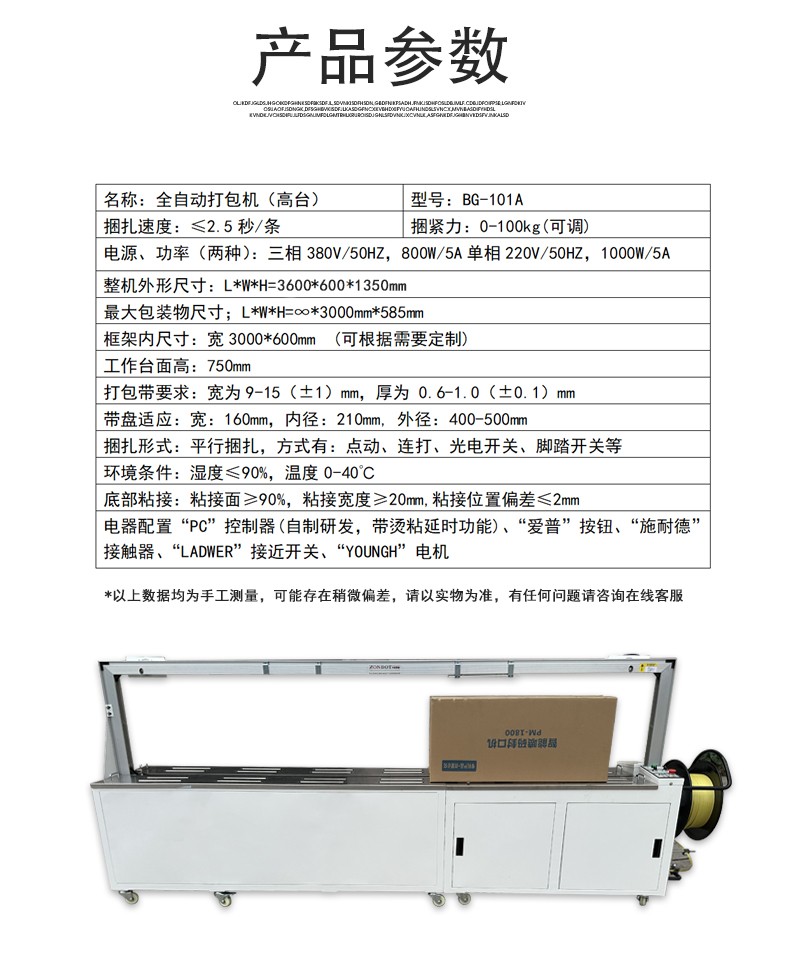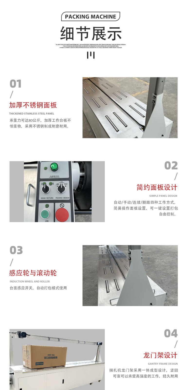 - 對(duì)于一些粉末狀或顆粒狀化工產(chǎn)品的包裝袋,全自動(dòng)打包機(jī)能夠根據(jù)包裝袋的重量和尺寸,合理調(diào)整打包帶的張緊力,保證包裝的牢固性。