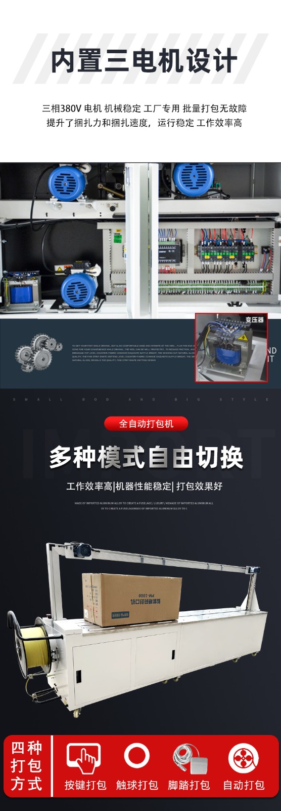 - 對(duì)于電子元器件的包裝,全自動(dòng)打包機(jī)能夠精確控制打包帶的張緊力,避免對(duì)脆弱的電子元器件造成損壞。