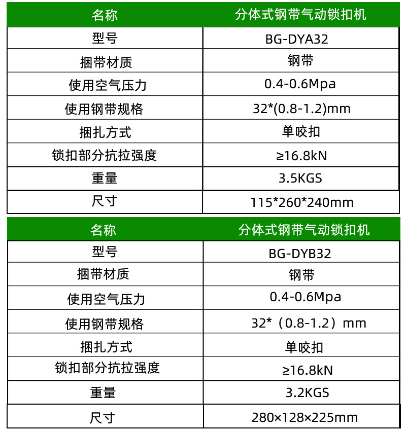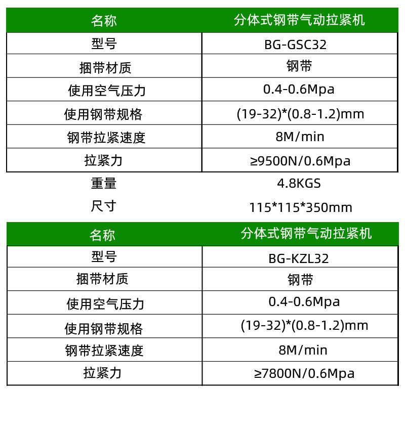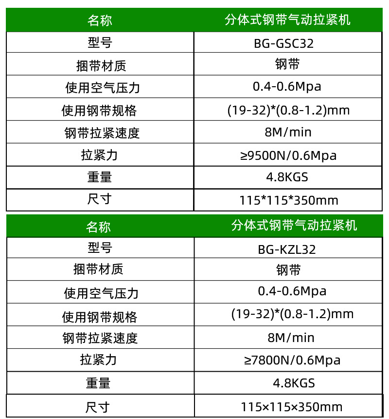 氣動(dòng)分體式鋼帶打包機(jī)BG-GSC32
